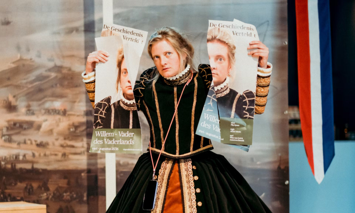 In Strijdtoneel gaat iedereen de strijd aan. Willem van Oranje, Vader des Vaderlands; Anna van Saksen, zijn tweede vrouw; Wim, hoofdrolspeler in de voorstelling; Flip, directeur van het theatergezelschap; Viva Historica, een internationale club die terug wil naar vroeger; Anneroos, actrice; Linde, educatiemedewerker en tenslotte het publiek. Hoever mag je gaan voor je idealen? Hoever moet je gaan? Strijdtoneel is een samenwerking tussen Museum Prinsenhof Delft en de zAAk A.